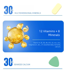 Marine Algae Calcium (0.6g):Â Plant-based calcium source.